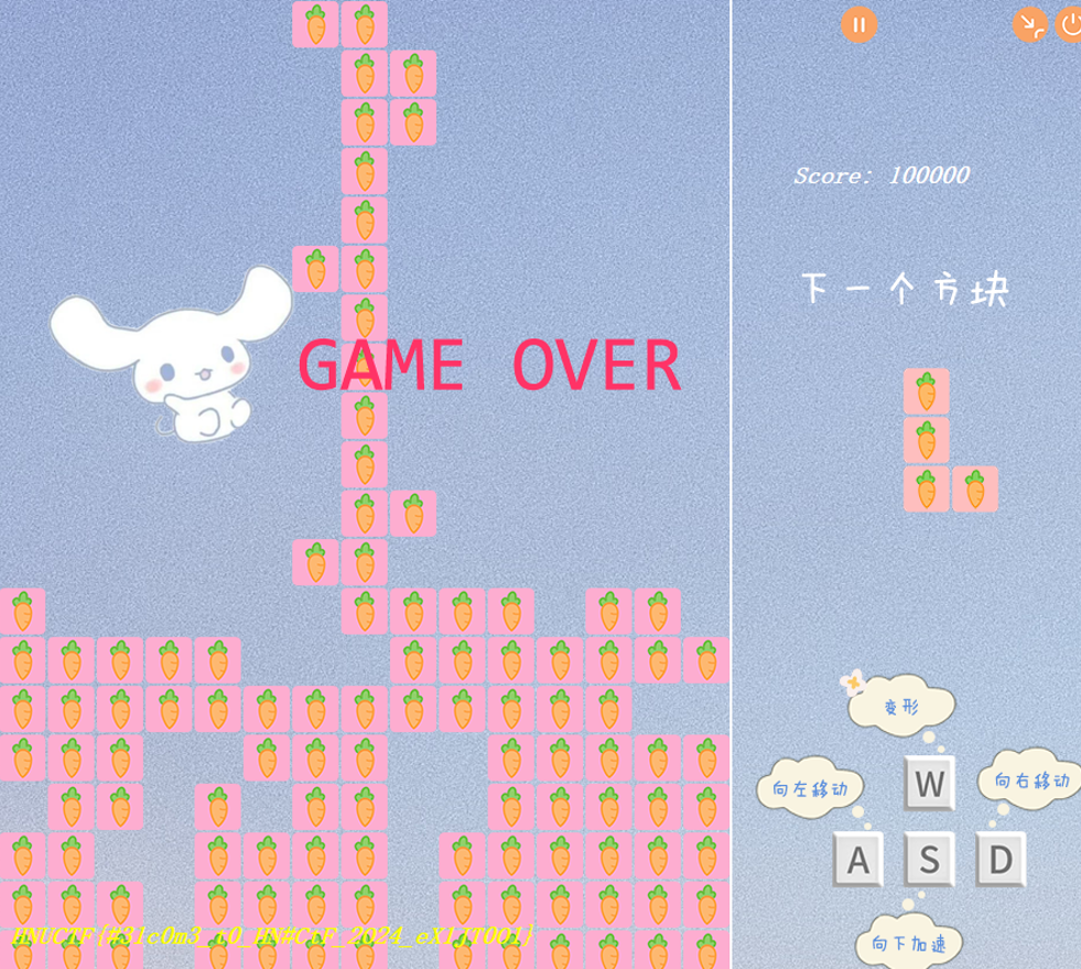 经典本地游戏CE修改器刷分咯。 用ce修改这个游戏,跟着网上教程来。 先得几分然后next scan最终得到这两个address。 Change一下变成10000,得到题目要求“10000分得到flag”。 把value改到10000以上的数,然后让乱玩让gameover,之后弹出来: 得到flag。