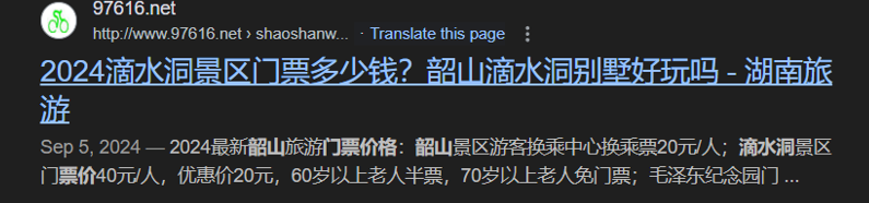 照片里可以看到: 虎踞龙盘在此间;灵秀聚钟人莫识 在bing搜索一下发现一篇介绍韶山滴水洞引用这句诗的新闻。(顺便感慨一下bing的强悍爬虫…已经把这个博客的文章给爬取了) 结合这里的山环境,可以合理猜测一下这个地点就是滴水洞景区,搜索一下它的票价。 根据flag所给规则,写入正确: