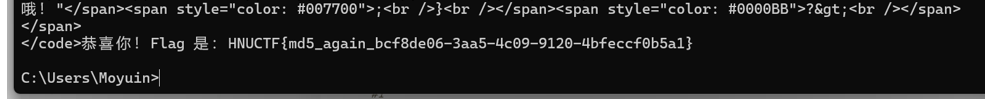 HNUCTF{md5_again_bcf8de06-3aa5-4c09-9120-4bfeccf0b5a1}