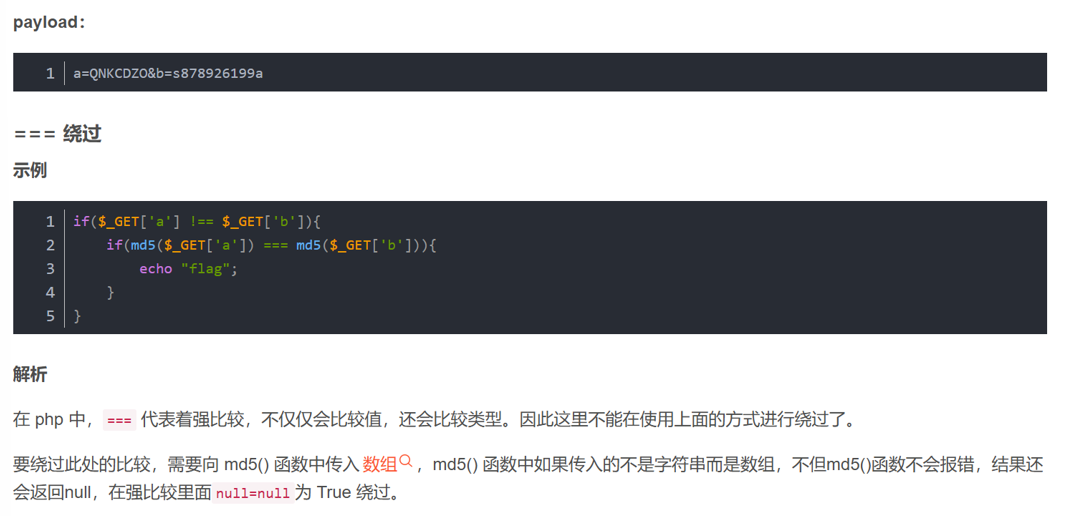 以为是Name从get变成post,改一下输入curl就行 发现不对! 转头一看发现是严格相等。为=== 由于题目还限定了强制转化字符串比较,因此不能使用数组来绕过,我们需要构造一对md5相同而不同字符的字符串。我们只能使用md5碰撞来实现。 去网上找一下符合要求的,复制粘贴形成post要传的参数。 curl post记得urlencode,把特殊字符传出去。