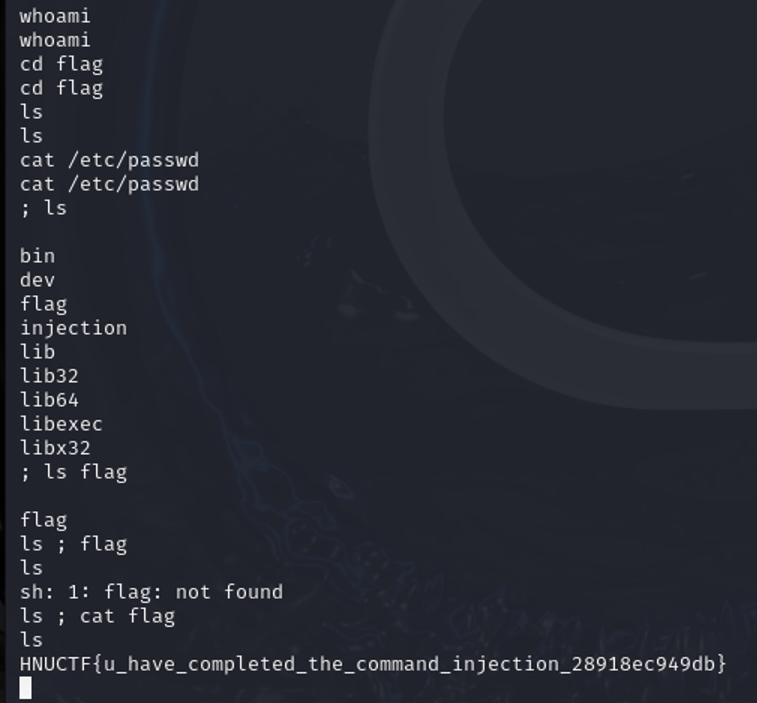 HNUCTF{u_have_completed_the_command_injection_28918ec949db}