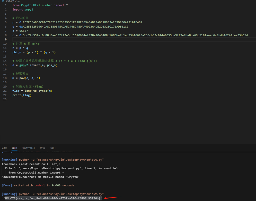 让ai写一个解密rsa的python ,再不断装库之后得到。