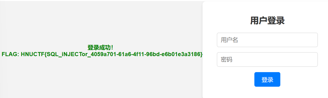 HNUCTF{SQL_iNJECTor_4059a701-61a6-4f11-96bd-e6b01e3a3186}