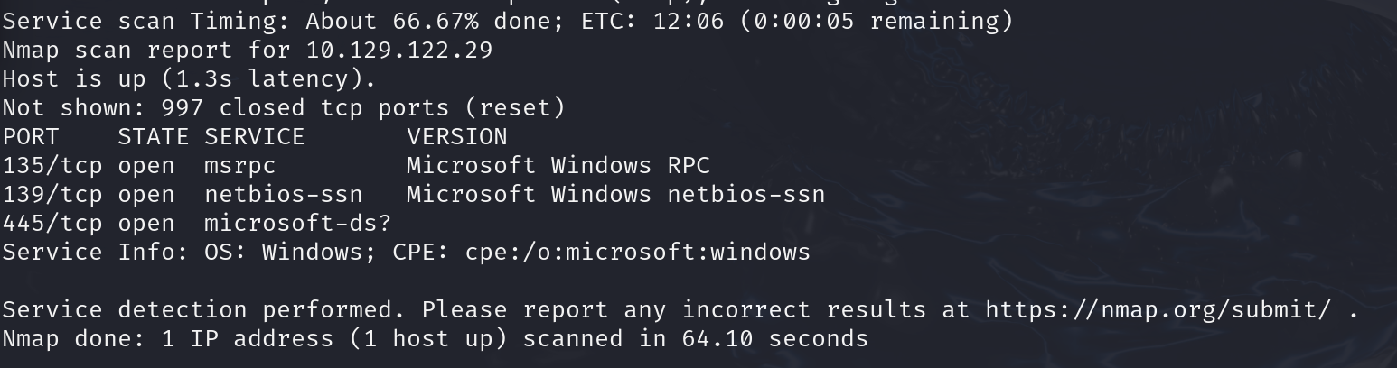 SMB 在445/tcp运行,服务名为 microsoft-ds。
