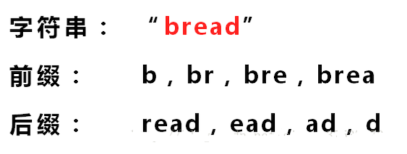 后缀:不含第一个字符但包含最后一个字符,的 所有字串